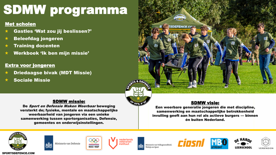 Tijdens de themadagen weerbaarheid maken scholieren van aangesloten scholen kennis met fysieke en mentale uitdagingen. In samenwerking met Gemeente Almere, Defensie en NOC*NSF beleven zij twee dagen vol sport, discipline en persoonlijke ontwikkeling.