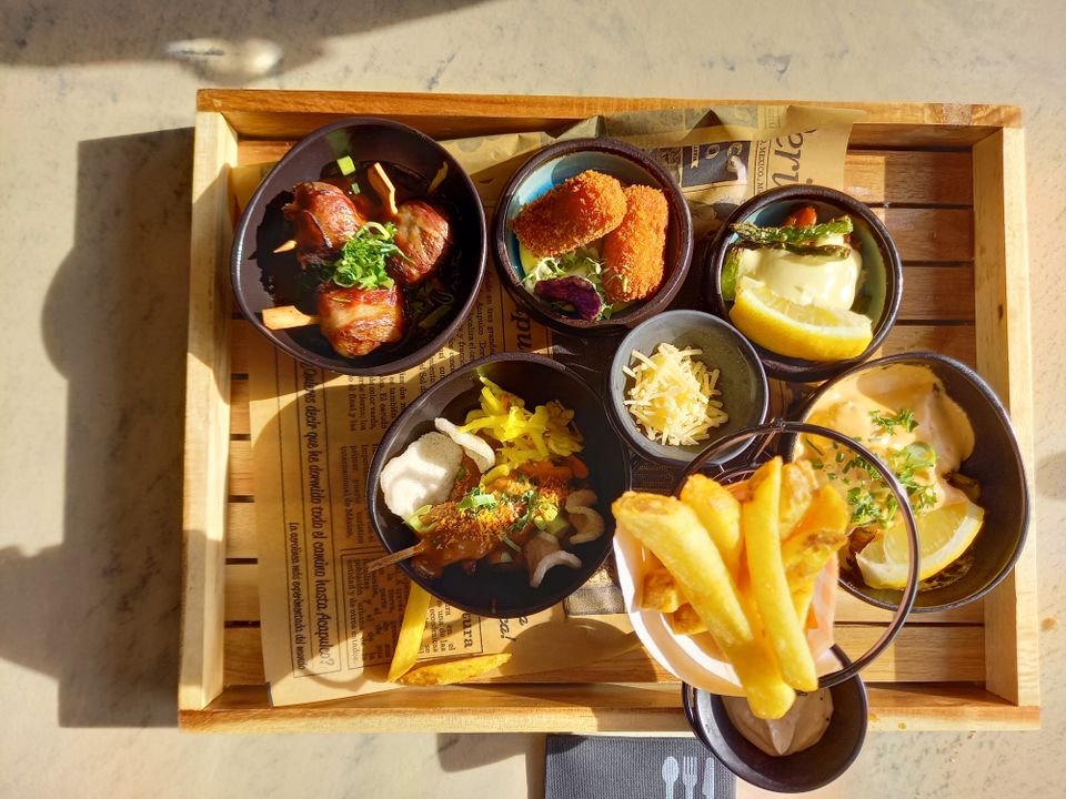 Voor een vast bedrag kun je twee en een half uur lang zoveel kleine gerechtjes bestellen als je op kunt. Per keer bestel je er twee per persoon, waarbij je kunt kiezen uit soep, voorafjes en vlees-, vis- en bijgerechten. Allemaal kleine gerechtjes met verse producten, zodat je met zoveel mogelijk gerechten en smaken kunt kennismaken. Bestellen doe je helemaal zelf, via een QR-code die je van de vriendelijke bediening krijgt. Die scan je, je vinkt aan wat je wilt eten en dat geef je zelf rechtstreeks door aan de keuken. Hoe handig is dat?!
