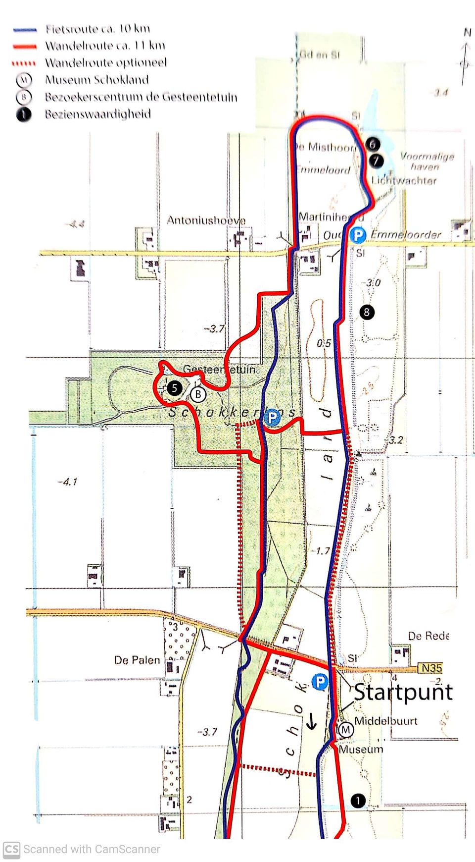 Zowel vanaf De Gesteentetuin als bij Museum Schokland kun je diverse fiets- en wandelroutes volgen. Overal en nergens kom je bordjes tegen die de routes markeren. Ook is er een TOP aan het begin van het parkeerterrein van Museum Schokland: een toeristisch overstappunt. Het is een hoog roestbruin bord met daarop een plattegrond, tips en routes in de omgeving en ook de welbekende ANWB-fietsknooppunten ontbreken niet. Handig!