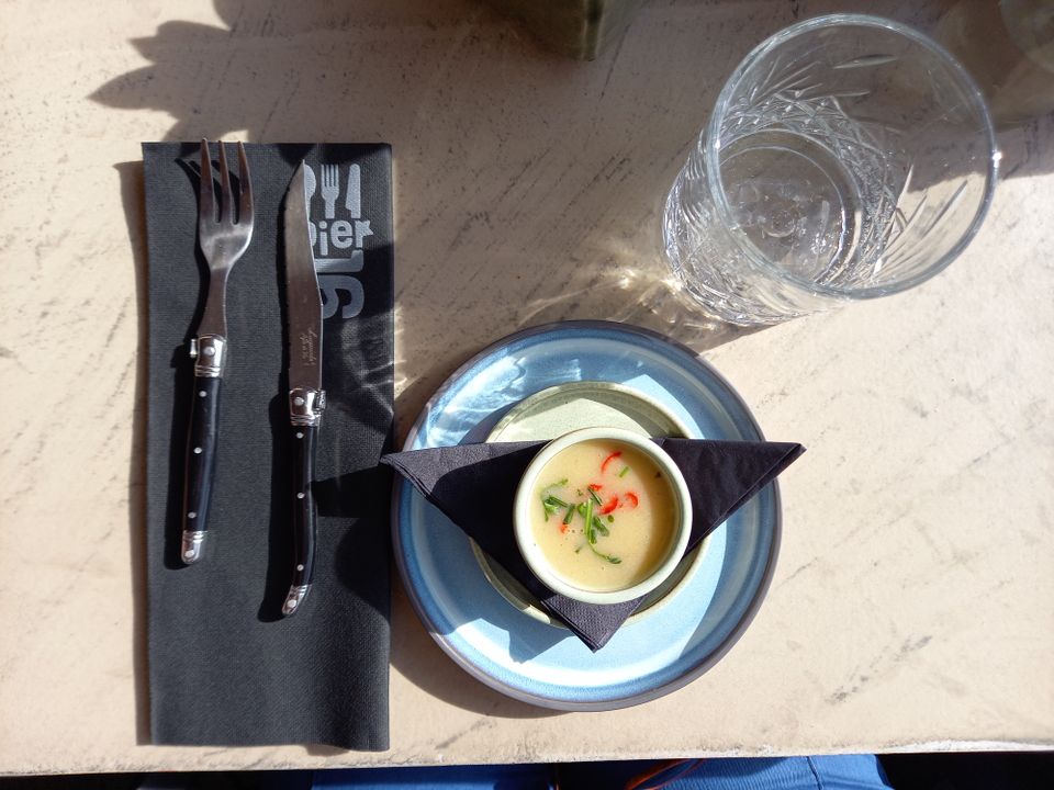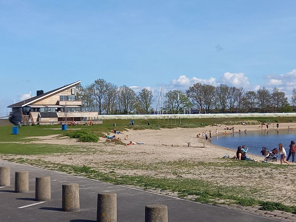 Ligt het aan mij of krijg jij ook een beetje een vakantiegevoel als je het Ketelmeer ziet met die bootjes erop? En dan ook nog al die mensen die zich heerlijk op het Schokkerstrand vermaken, zeker met het stralende weer van vandaag. Ja, dat extra stukje fietsen om ook dit landschap nog even mee te pikken was een goede keuze. Net als restaurant Pier16, trouwens. Ze hebben een warm en zonnig plekje voor ons op het terras gereserveerd en we proeven hier hun gloednieuwe concept ‘onbeperkt bourgondisch genieten’.